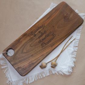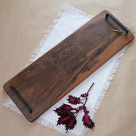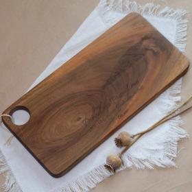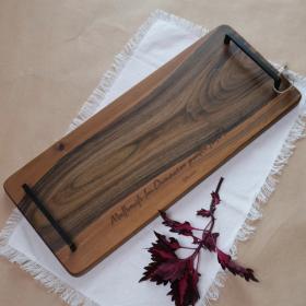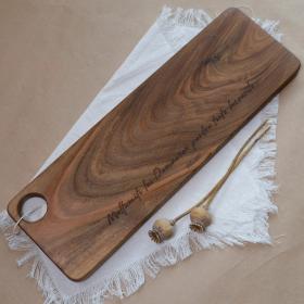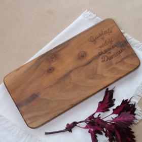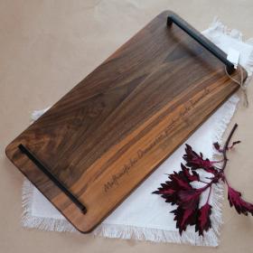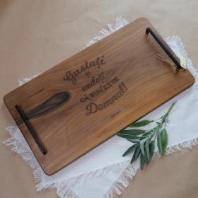 Platouri de servire din lemn de diferite esențe (nuc, paltin, cireș, păr, ulm) produse cu multă atenție în atelierul nostru, gravate cu diferite texte biblice și finalizate prin aplicarea unui ulei cu ceară certificat pentru contactul cu alimentele.